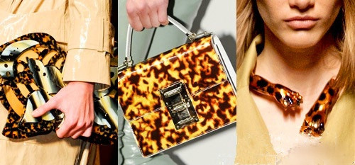 2014的春夏,豹紋和蛇紋的流行將由玳瑁取代。玳瑁以其精致的動物花紋注入女式配飾無法抗拒的優雅。它用在每一個女式配飾上,我們都可以體會一種精心打扮的感覺。