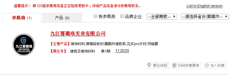 九江賽璐珞將于十月十五日至十九日參加第120屆廣交會,這將是我司近幾年連續多次獲得江西交易團分配的參展名額,我司將會再接再厲,再創佳績!